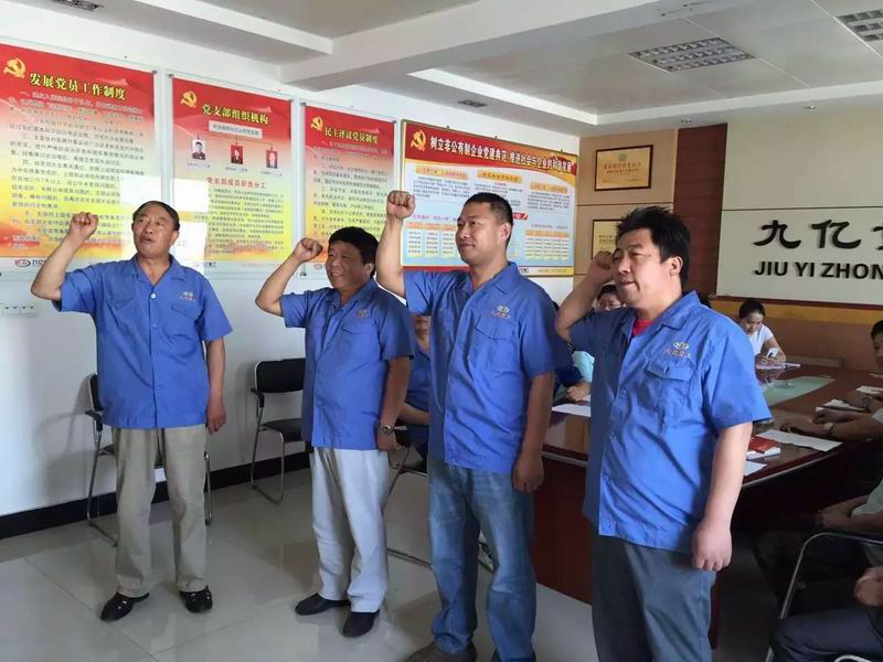 2015年7月1日:今天是中國***黨94歲的生日:洛陽九億重工集團有限公司黨支部為3名新黨員舉行入黨儀式:宣誓入黨誓詞;黨的事業(yè)后繼有人!